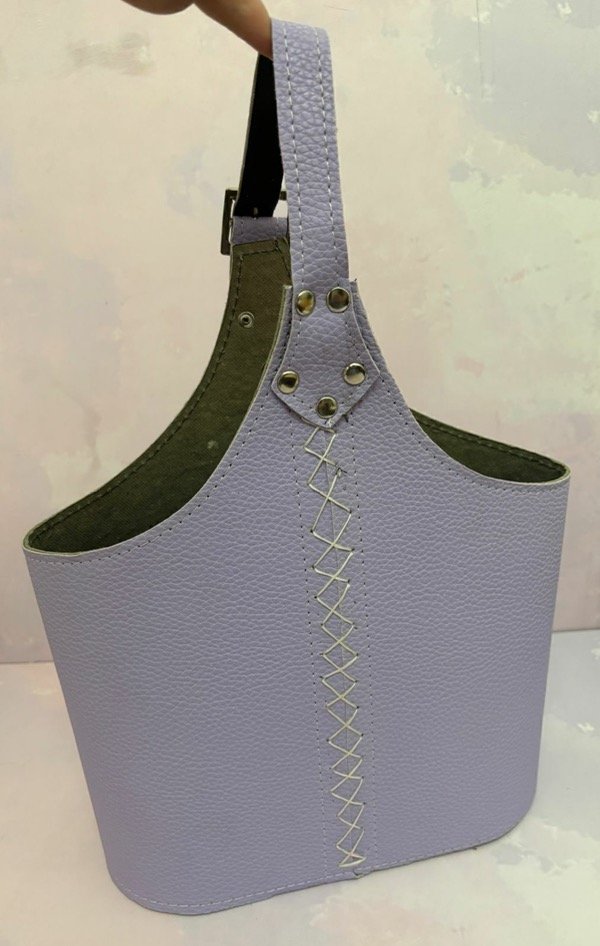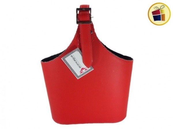 canasta Matera de ecocuero . Con tira de agarre con hebilla regulable.